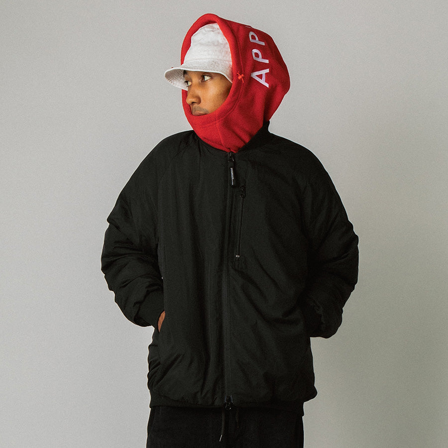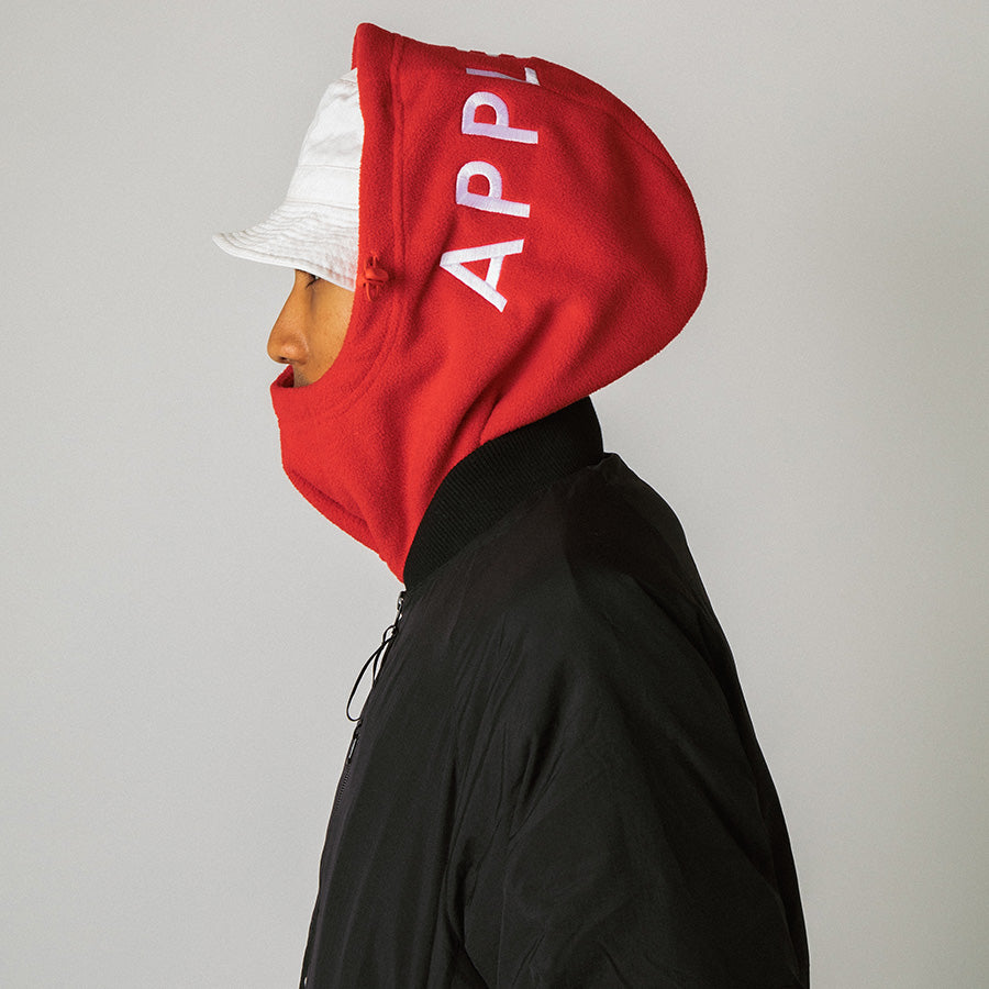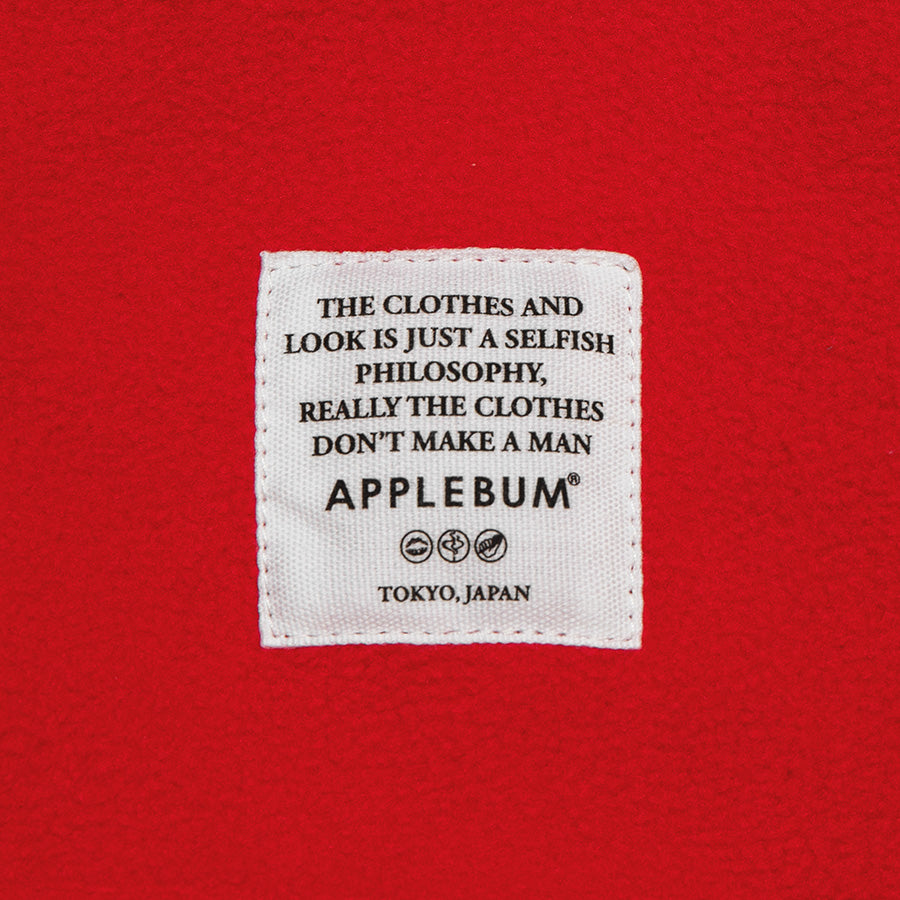 フード部分にAPPLEBUMのロゴを落とし込んだフリース素材のフード。