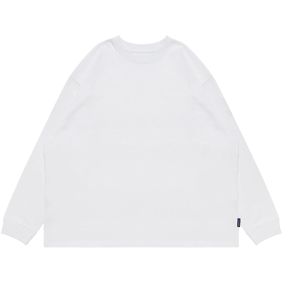 一見無地Tシャツと見間違えるほど、シンプルで洗練されたデザインが魅力のアップルバムのロングスリーブ Tシャツです。