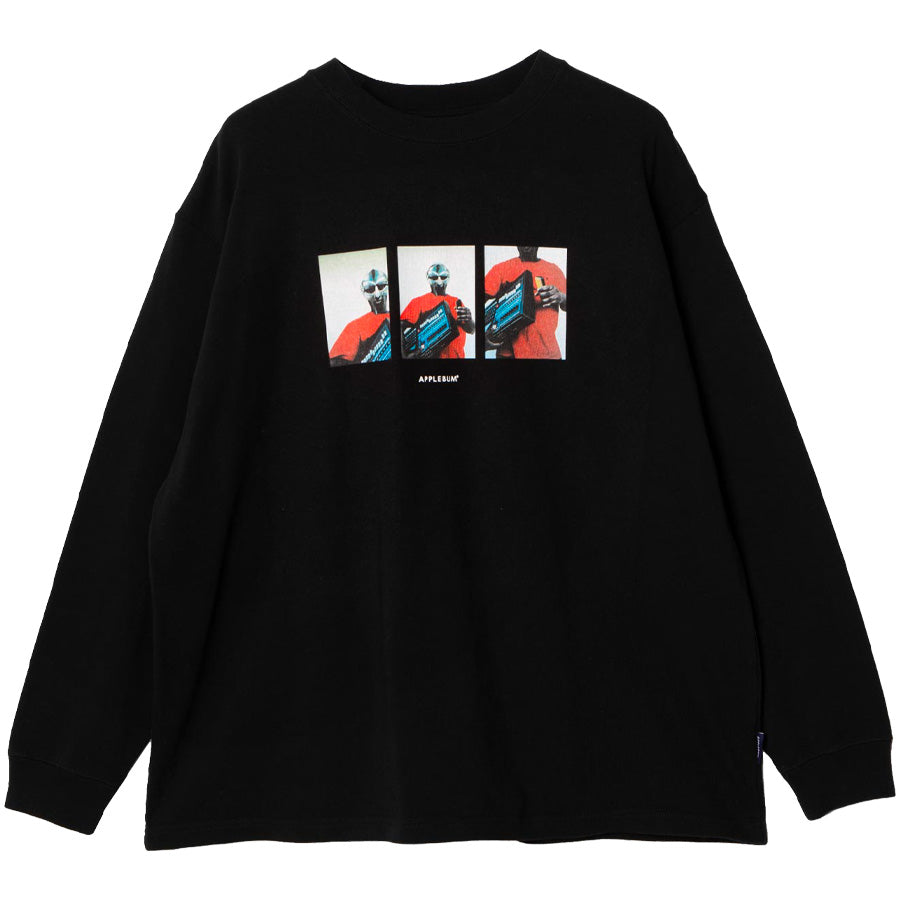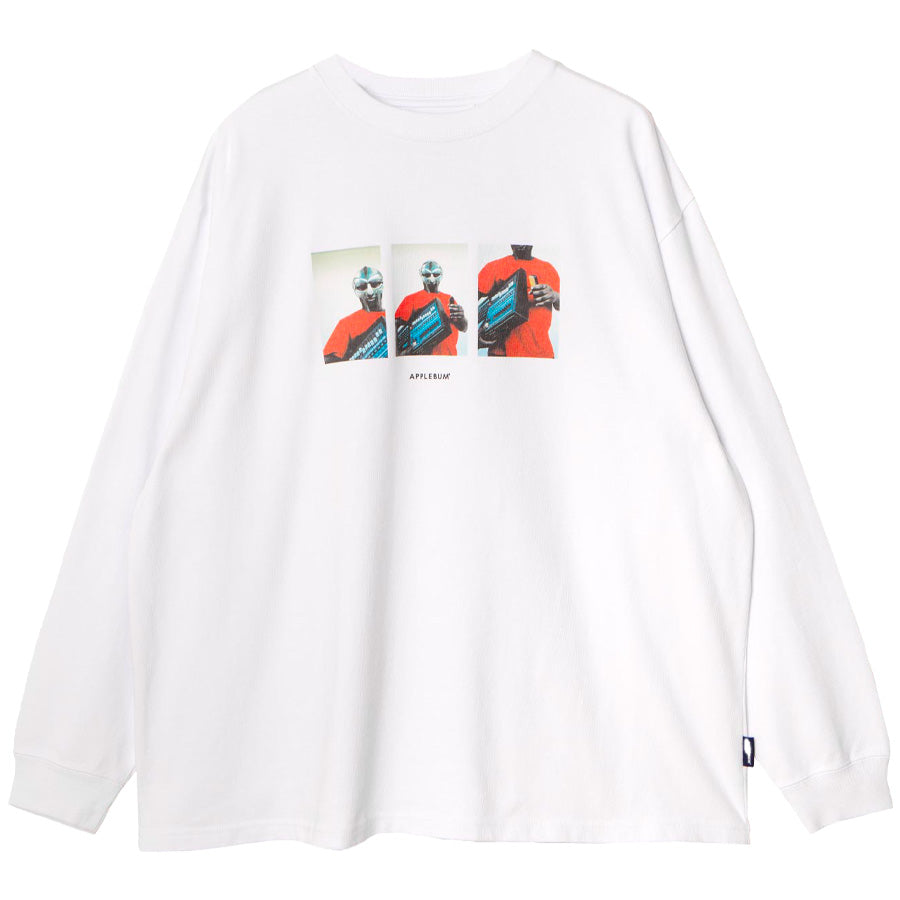 ヒップホップの象徴的存在 MF DOOMを、異なる3カットで構成した印象的なビジュアルをフロントにレイアウトした、APPLEBUM × Eric Colemanによるコラボレーション ロングスリーブTシャツです。