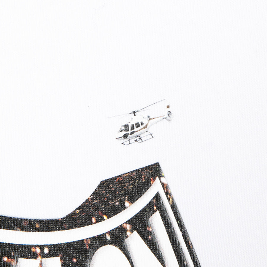 raidback fabric の「変形アーチロゴ」をベースに、APPLEBUMのマスターピースグラフィックである、「BABYLON VIEW」の夜景グラフィックを融合したロングスリーブTシャツ。