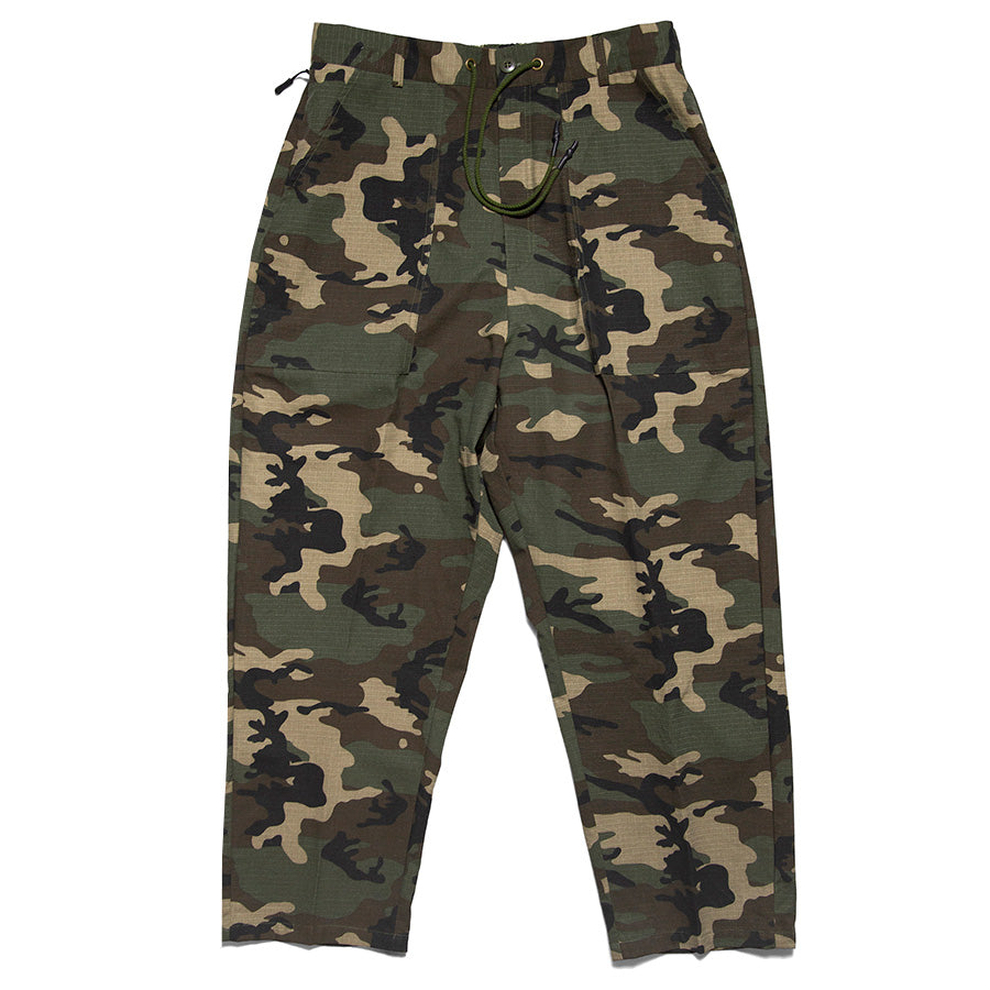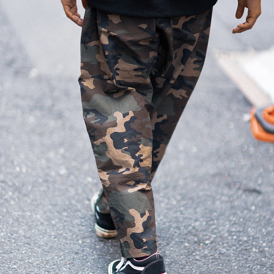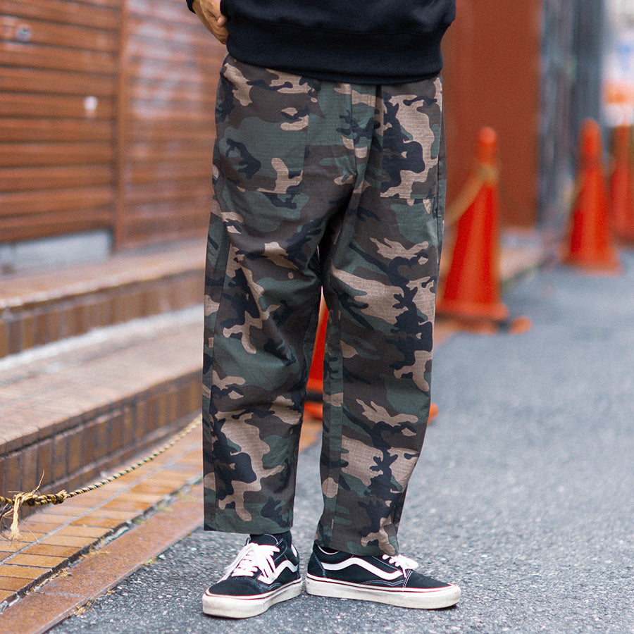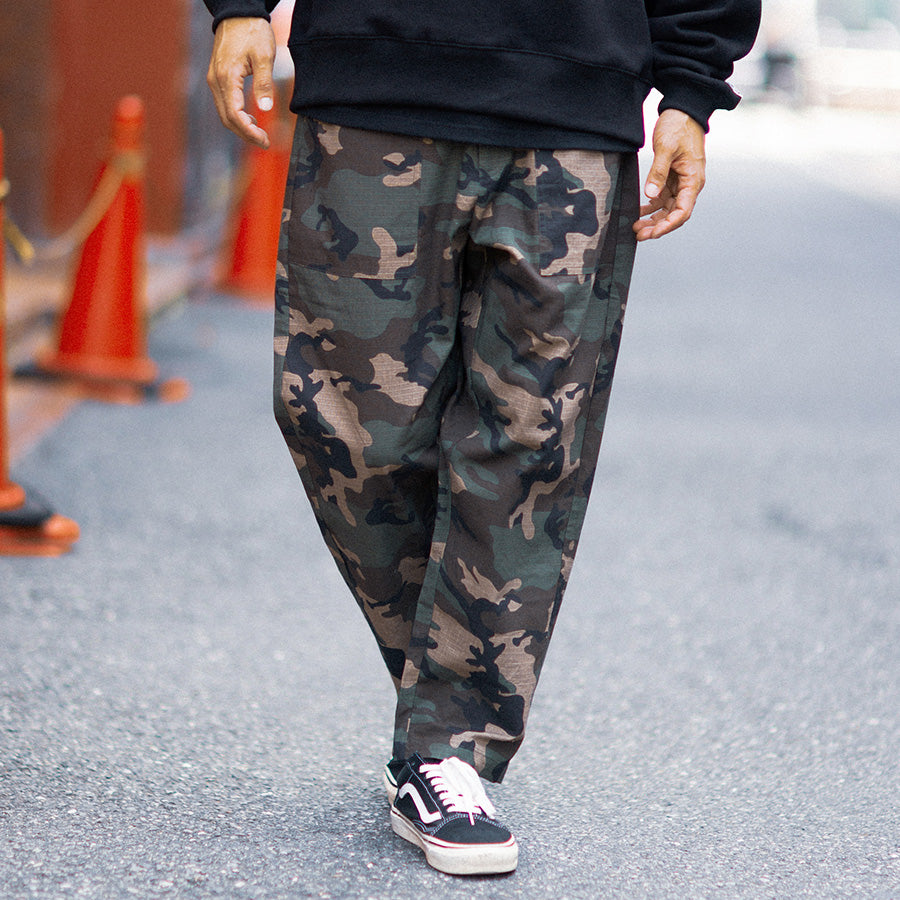 ブランドのクラシックアイテムのひとつであるベイカーパンツ、今シーズンはカモ柄を採用。
