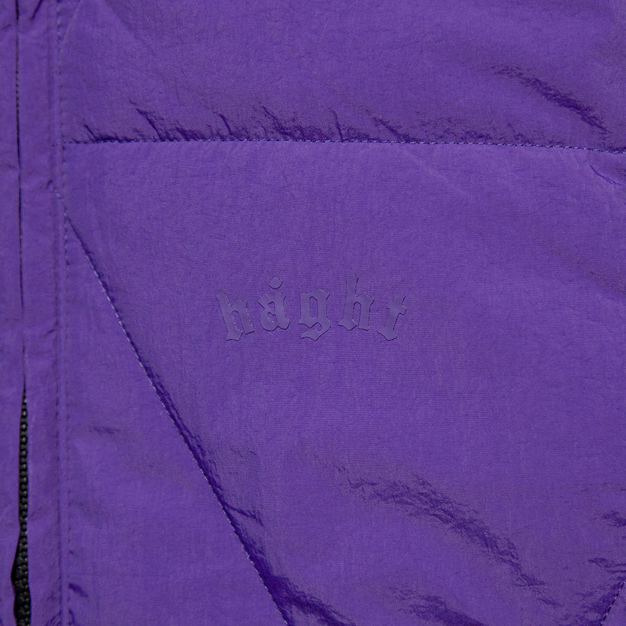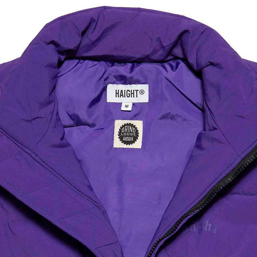 神奈川県川崎市のガレージを拠点に活動するクリエイティブ集団「GRINDLODGE(グラインドロッヂ)」と、ストリートカルチャーを背景に展開する「HAIGHT(ヘイト)」によるコラボレーションモデル、DELTA QUILT VEST ft. GRINDLODGE。全体に施された三角形のキルティングパターンが印象的な中綿ナイロンベストです。