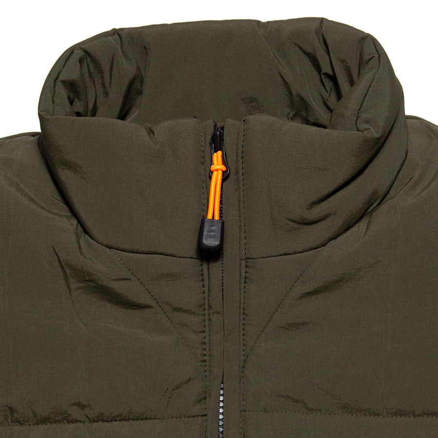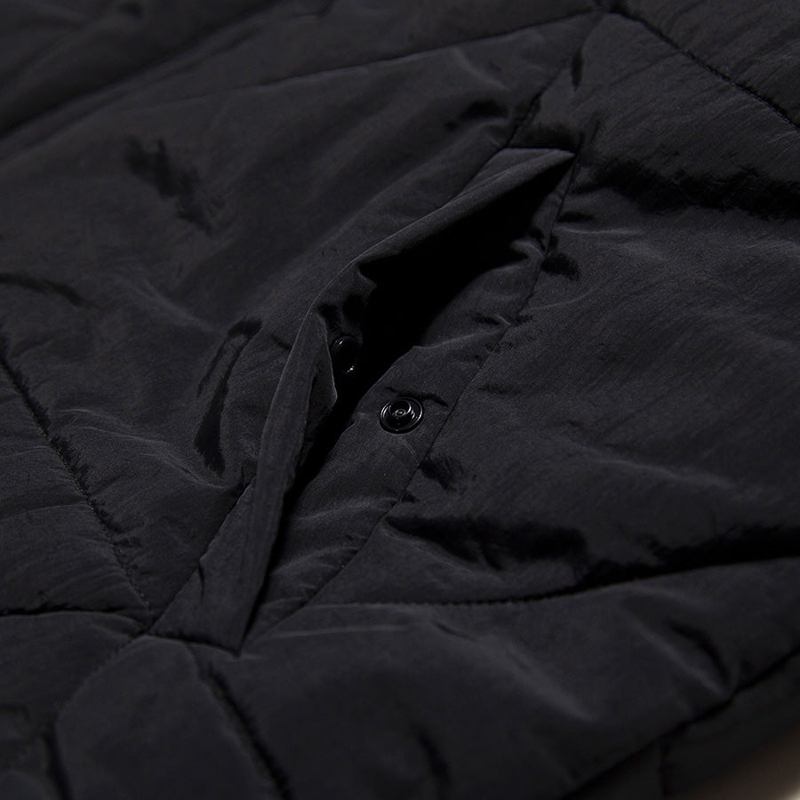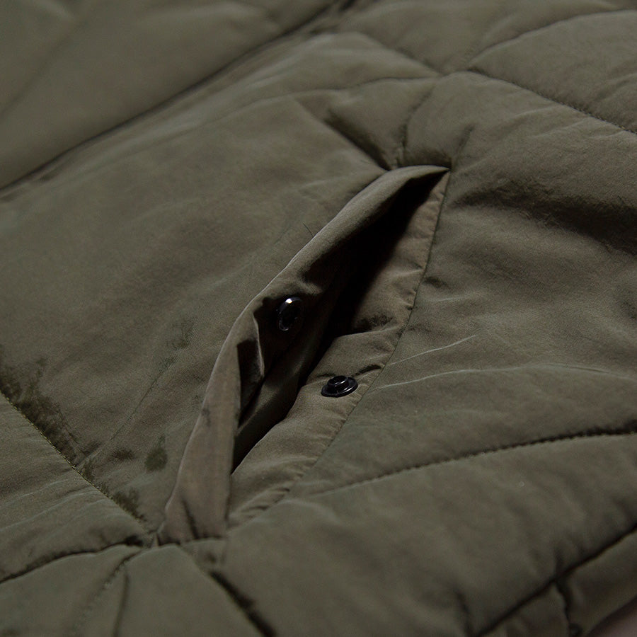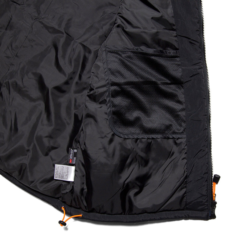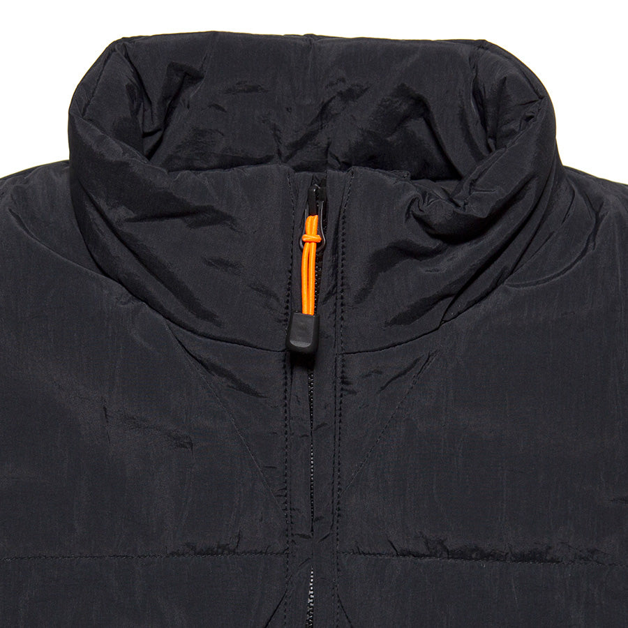 表地には軽量でハリのあるナイロン素材、裏地にはタフタを使用。中綿には高機能素材3M Thinsulate(シンサレート)を採用し、保温性と軽やかな着用感を両立。寒い季節のレイヤードスタイルにも最適です。
