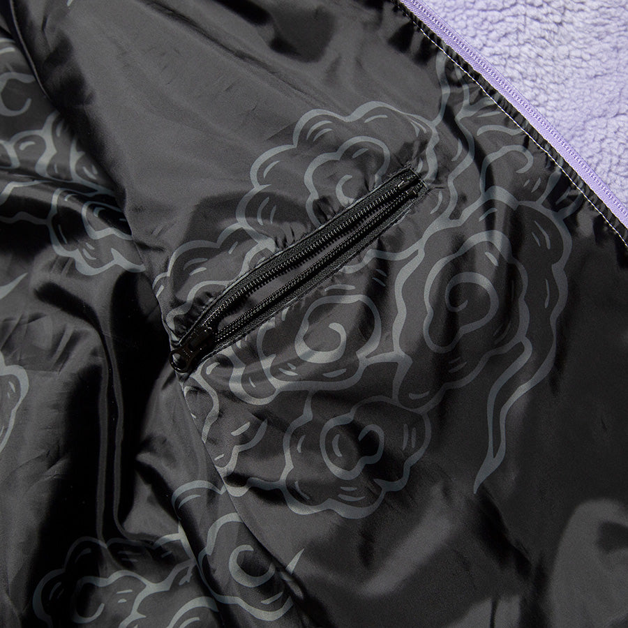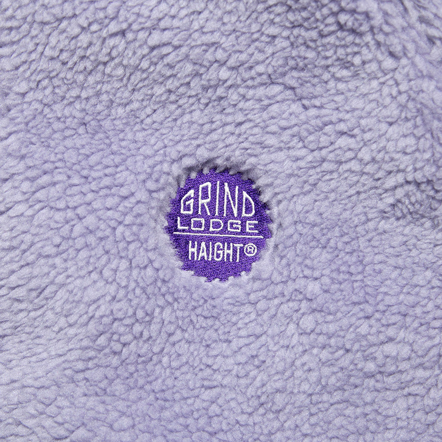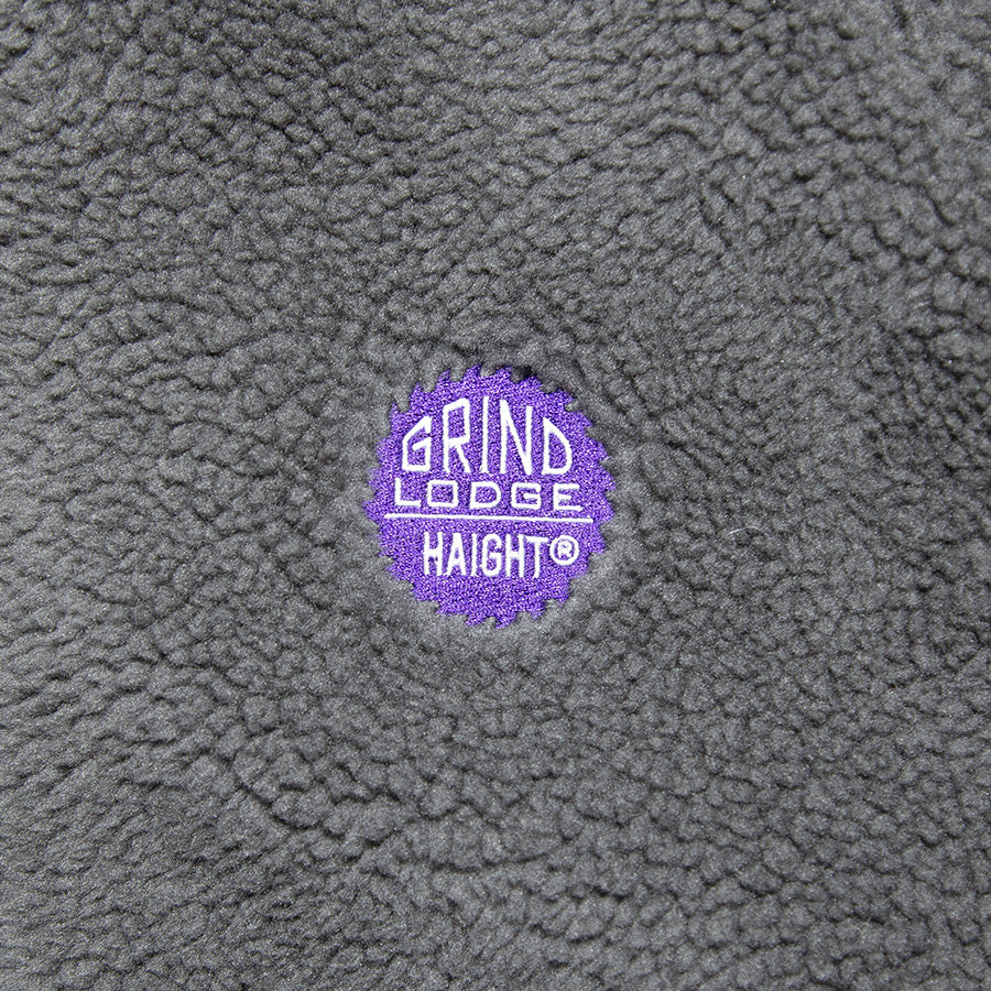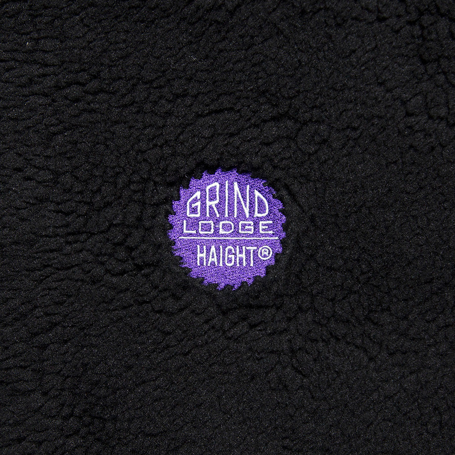 胸元にはGRINDLODGE × HAIGHTの刺繍ロゴをあしらい、ファスナー引き手やディテール部分にアクセントとして効かせたパープルカラーが、ストリートな存在感を演出。