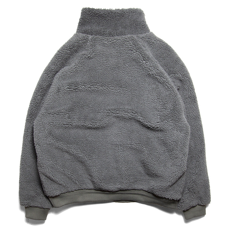HAIGHT(ヘイト)と神奈川県川崎市を拠点に活動するクリエイティブ集団「GRINDLODGE(グラインドロッヂ)」によるコラボレーションプロダクト、BOA JACKET ft. GRINDLODGE。表地にはボリューム感のあるボアフリースを採用し、内側には中綿を挟んだ総裏仕様。寒い季節でもしっかりと保温してくれる防寒性抜群のアウターです。