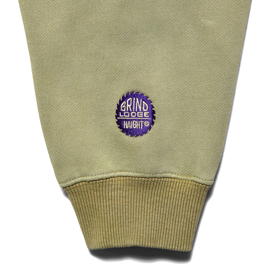 さらに、左袖にはGRINDLODGE × HAIGHTのコラボレーションロゴ刺繍が入る特別仕様。細部にまでこだわりが光る一枚です。