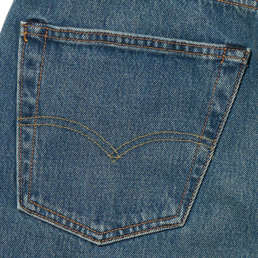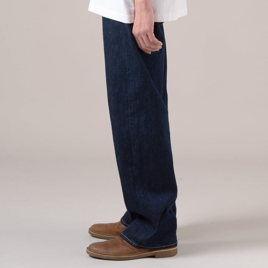 ビンテージサイズと日本のデニム文化から着想を得た設計で、ヒップから太もも、裾にかけてゆとりを持たせた、開放感のあるプロポーションが特徴です。