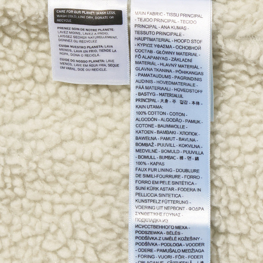 耐久性に優れたコットンデニムを使用し、裏地にはふわふわのシェルパ(ボア)素材を採用。