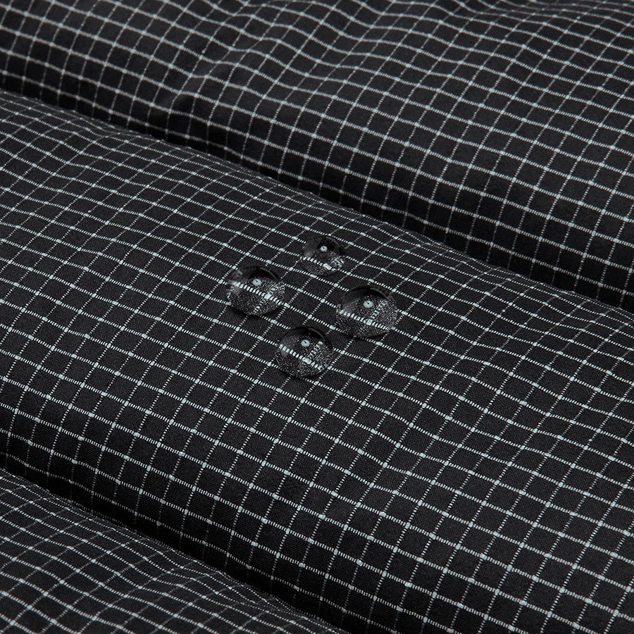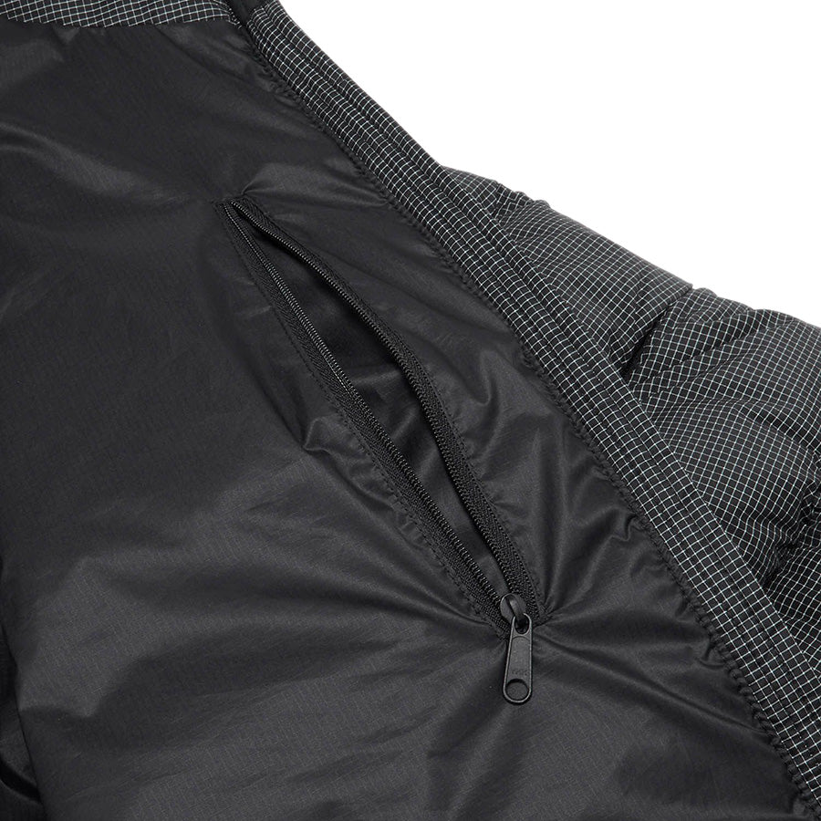 薄く柔らかいナイロン生地にダイニーマ繊維を格子状に織り込むことで高い耐久性を発揮し、表面にははっ水加工を施すことで多少の雨でも安心。中わたには高度な洗浄技術により不純物を徹底除去したGreenRecycled CLEANDOWNを使用し、軽さと高い保温力を両立しています。